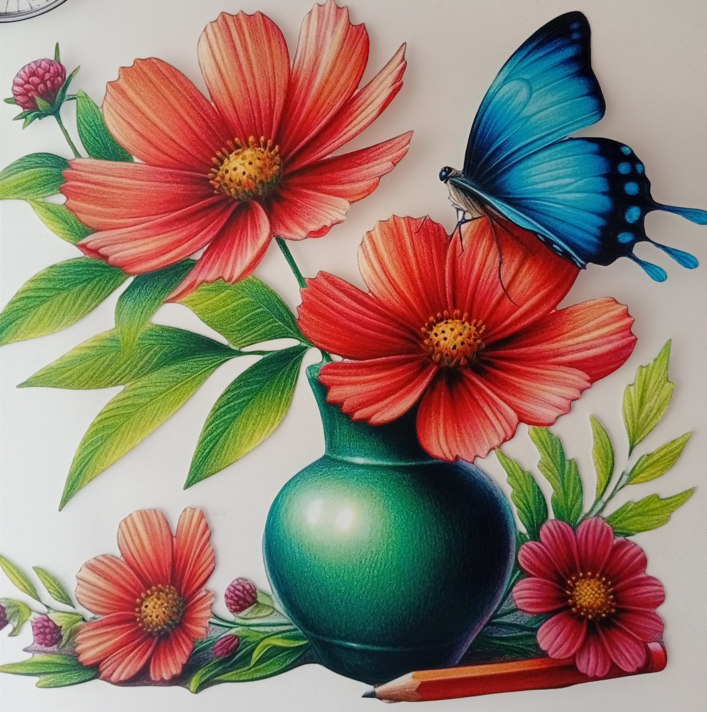ADR-250 - JARRO VERDE COM PAPOULAS E BORBOLETA - ADESIVOS DTF
